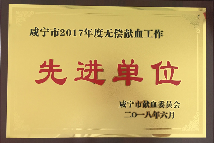 咸寧市無償獻血工作“先進單位”